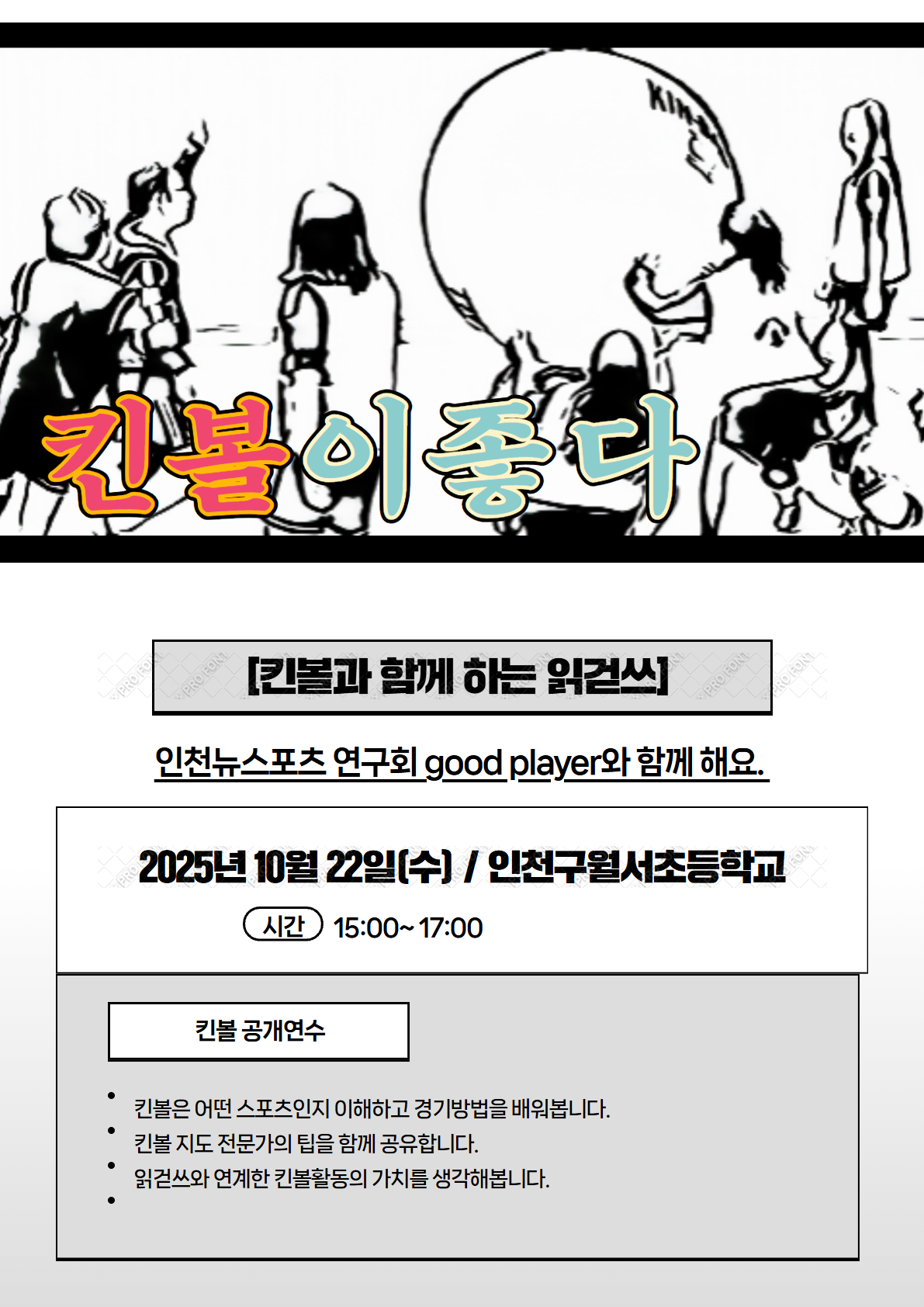 교과교육연구(회)형 예체능(음,미,체 등) 남동구 킨볼과 함께 하는 읽걷쓰활동 공동체명인천 뉴스포츠연구회 good player 일시2025년 10월 22일 15:00 - 17:00 장소인천구월서초 2층 체육관 좌석10석 / 40석 나눔방법공개연수(대면) 담당자인천구월서초홍경종 신청기간 마감 목록보기