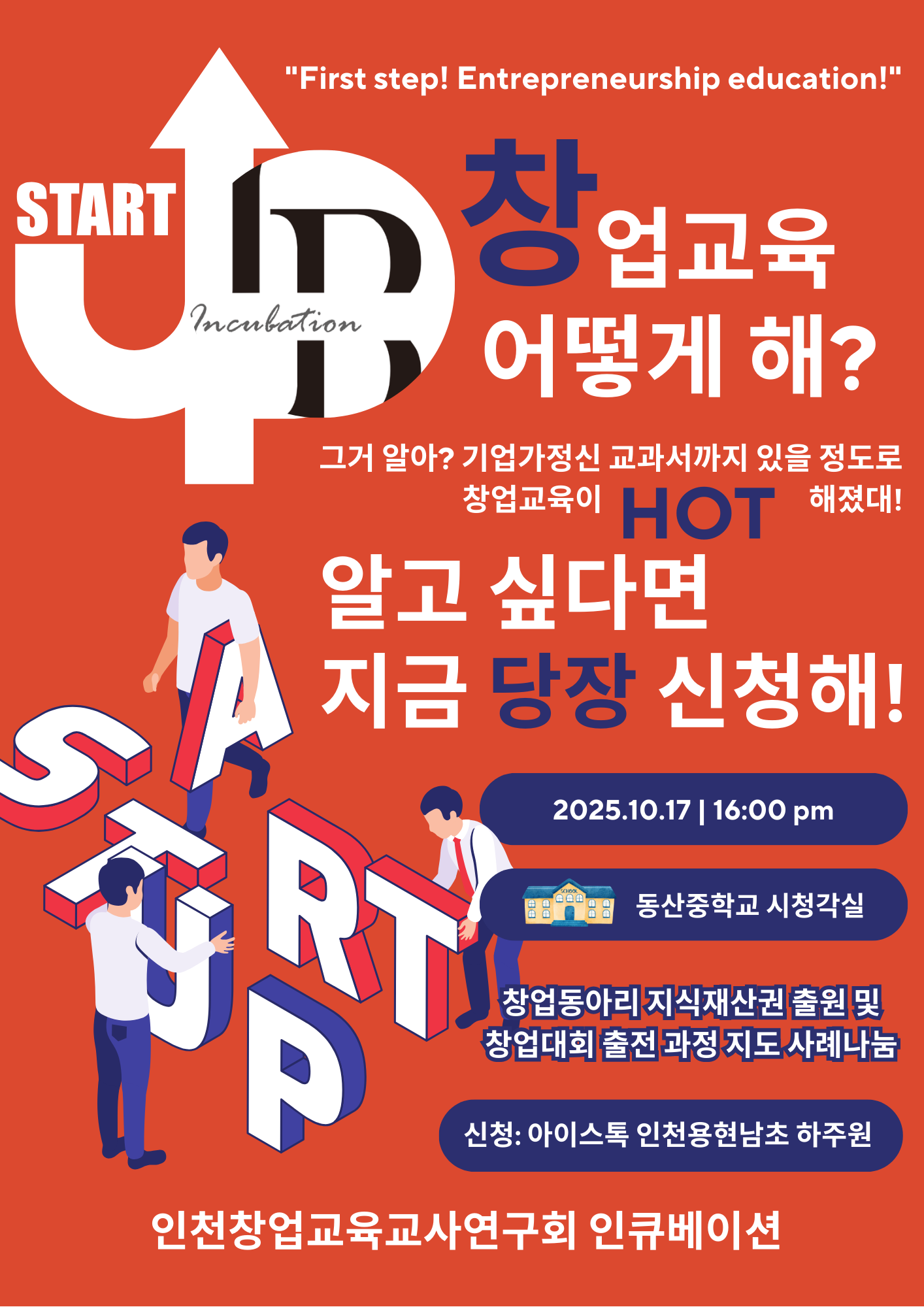 주제연구형 기타 동구 창업 동아리 운영 사례 나눔(지식재산권 출원 및 경진대회 출전 과정 지도 사례나눔) 공동체명인큐베이션 일시2025년 10월 17일 16:00 - 18:00 장소동산중 시청각실 좌석12석 / 30석 나눔방법워크숍(대면) 담당자인천용현남초 하주원 신청기간 마감 목록보기