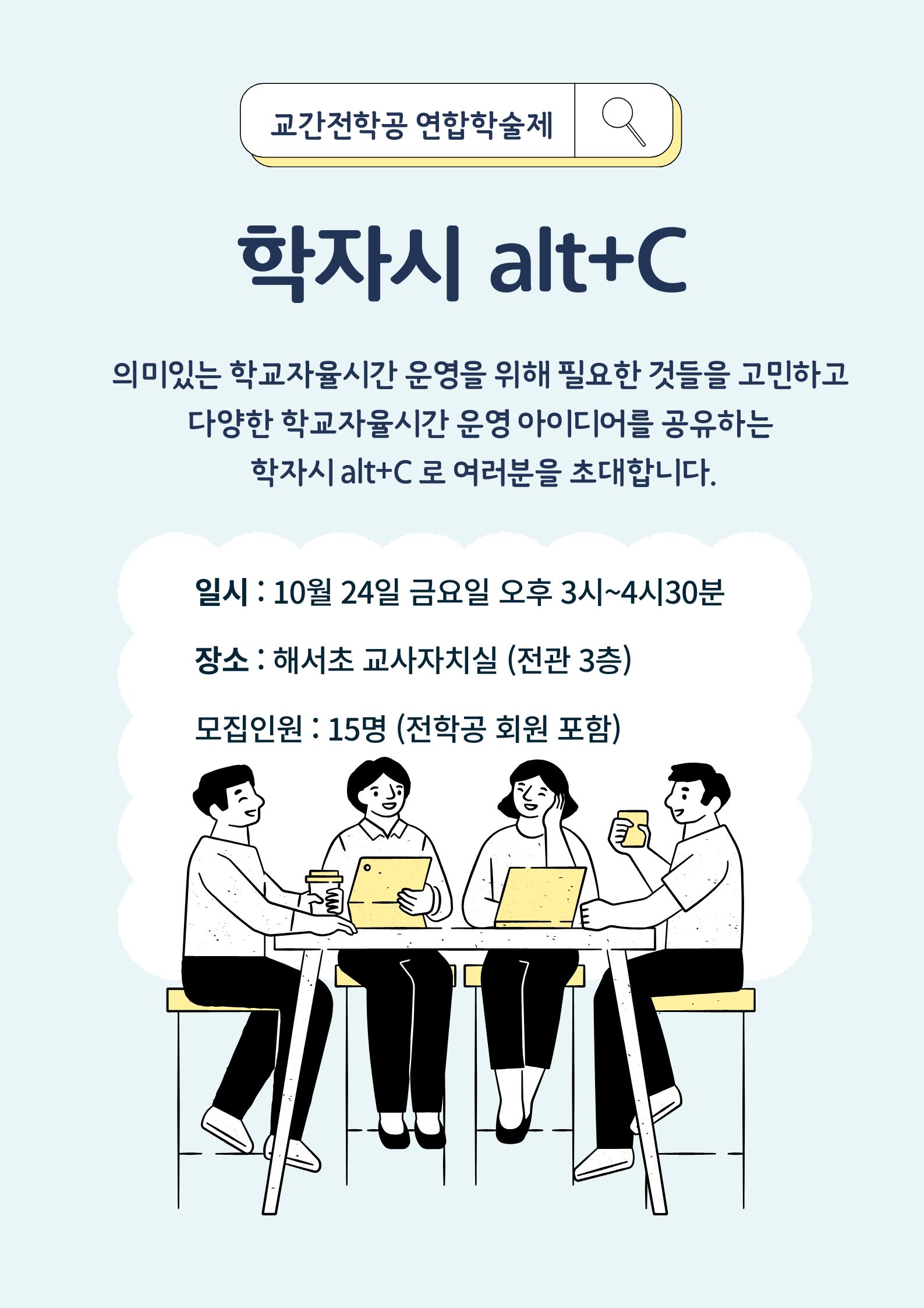 주제연구형 교육과정(IB 등) 서구 학교자율시간 운영 아이디어 공유 워크숍 공동체명학자시 Alt+C 일시2025년 10월 24일 15:00 - 16:30 장소인천해서초 3층 교사자치실 좌석20석 / 20석 나눔방법워크숍(대면) 담당자인천청일초 김자현 신청마감 목록보기