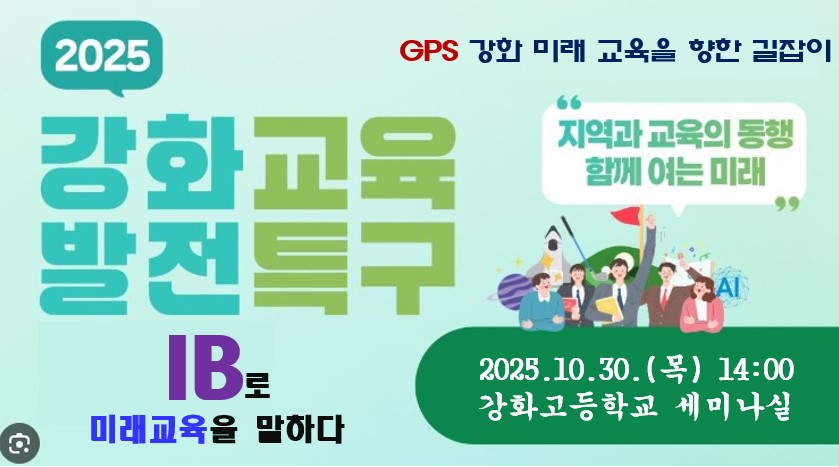 주제연구형 교육특구/애기애타 강화군 강화미래교육, IB로 말하다 공동체명GPS 강화교육길잡이 일시2025년 10월 30일 14:00~16:30 장소강화고 세미나실 좌석2석 / 30석 나눔방법워크숍(대면) 담당자강화고 조형규 신청기간 마감 목록보기
