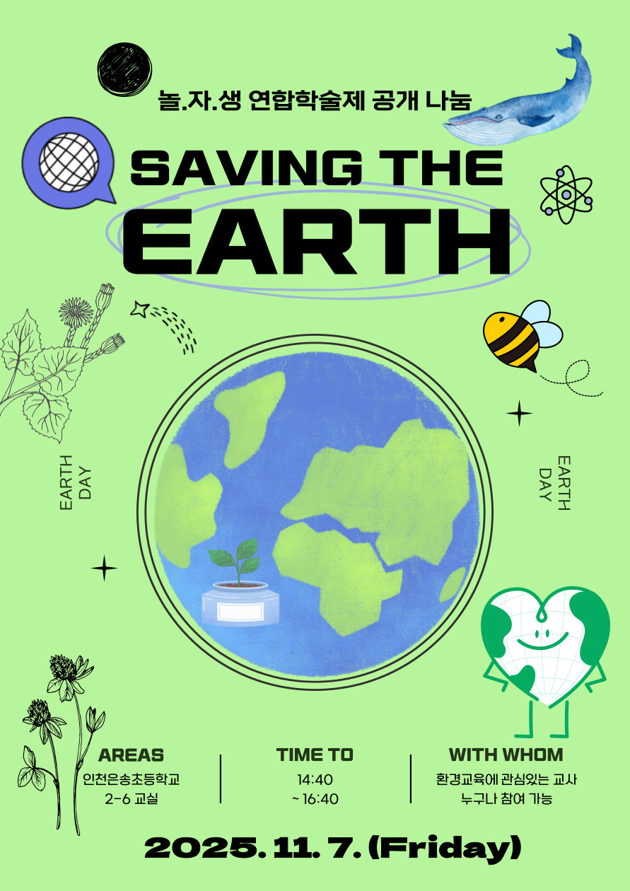 주제연구형 놀이교육 연수구 "교과연계 생태전환교육 운영 사례" 공동체명놀.자.생. (놀이중심 자원재활용 생태전환교육연구회) 일시2025년 11월 07일 14:40 - 16:40 장소인천은송초 2-6교실 좌석8석 / 20석 나눔방법공개연수(대면) 담당자인천은송초 이민규 신청기간 마감 목록보기