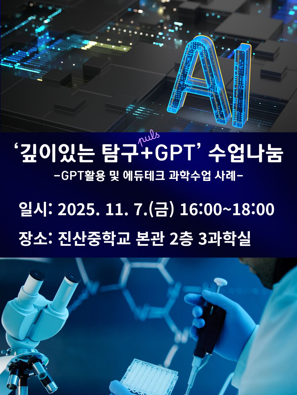 교과교육연구(회)형 과학 부평구 과학탐구와 챗GPT데이터분석 활용 수업 나눔 공동체명NEWTON이 GPT를 만났을 때! 일시2025년 11월 07일 16:00 - 18:00 장소진산중 본관 2층 3과학실 좌석9석 / 25석 나눔방법수업나눔(대면) 담당자진산중 최선희 신청기간 마감 목록보기