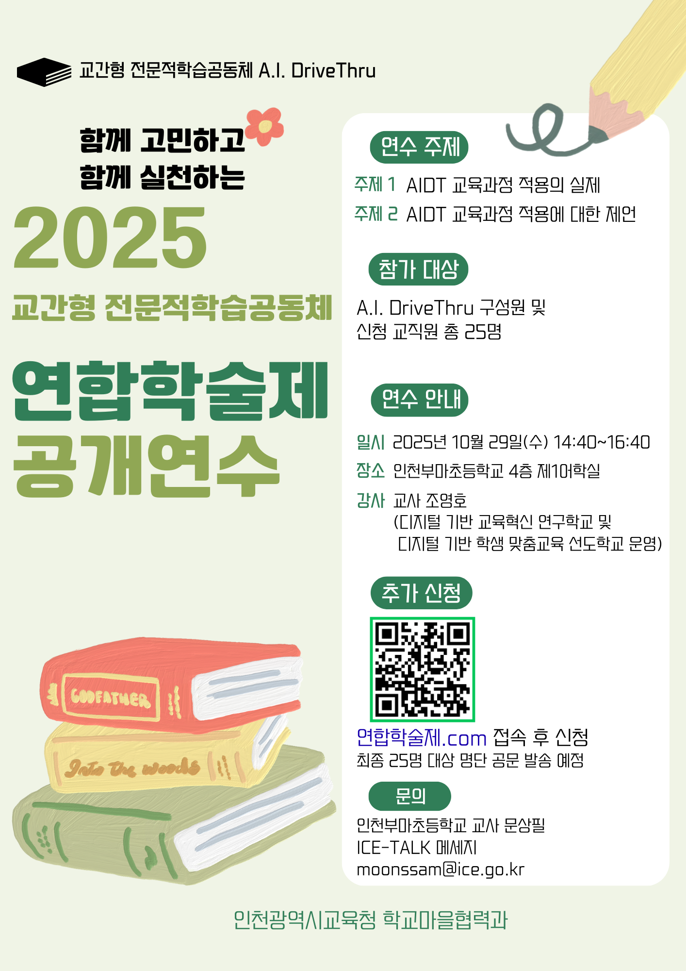 주제연구형 AI・디지털교육/에듀테크 부평구 AIDT 교육과정 적용에 대한 제언(공개연수) 공동체명A.I. DriveThru 일시2025년 10월 29일 14:40 - 16:40 장소인천부마초 4층 1어학실 좌석13석 / 25석 나눔방법공개연수(대면) 담당자인천부마초 문상필 신청기간 마감 목록보기
